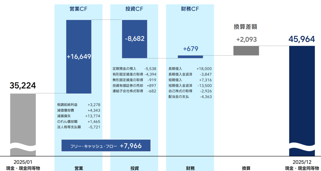 一方、営業キャッシュフローは歯科事業を中心に十分に稼げており、投資キャッシュフローに回すだけの資金があります。