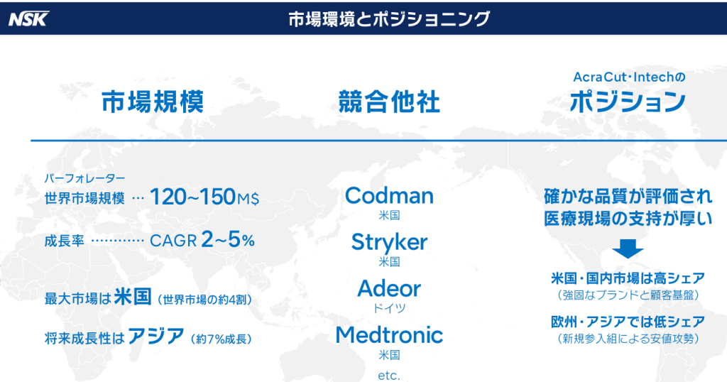 ナカニシの稼ぎ頭は圧倒的に歯科事業にあり、従来海外営業拠点拡充による直販体制を強化してきたのに対して、DCI事業買収によるアメリカ歯科事業の需要拡大。
