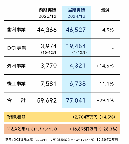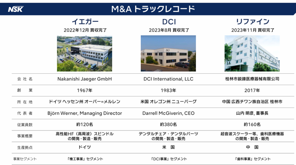 そして2023年に米国のデンタルチェアメーカー、DCI International, LLCの買収。