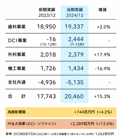 売上高/EBITAの観点で言えば、圧倒的に歯科事業であったものに、売上高ではDCI事業が大きな金額を占めることとなりました。