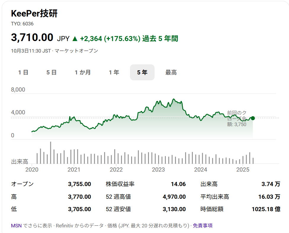 本日は、Keeper技研について取り上げます。