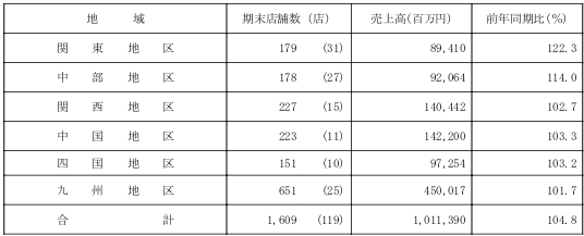 九州が売上の40%超を占めているとはいえ、中国、四国、関西なども大きな売り上げを上げていることが分かります。