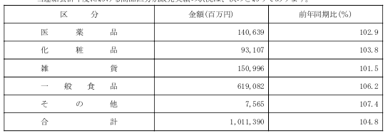 (サンドラッグ519百万円、クリエイトSD550百万円、カワチ薬品757百万円)
