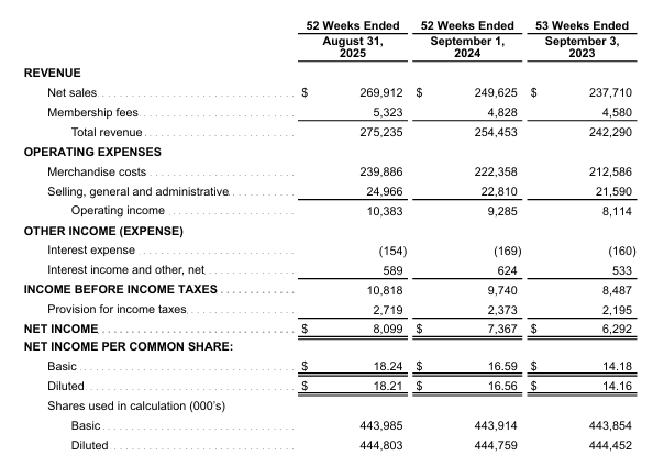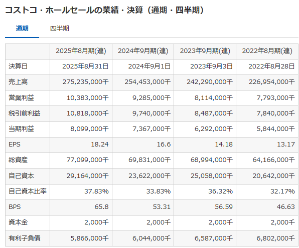 コストコ・ホールセール【COST】:業績・決算(通期・四半期) – Yahoo!ファイナンス