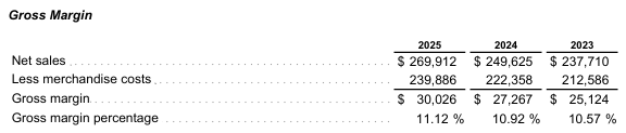 一つは、「百貨店で売られているような高品質商品をできるだけ低価格で売る」ところにあり、COSTCOの粗利率の低さ(2025年11%)こそが強みに直結しているんだそうです。